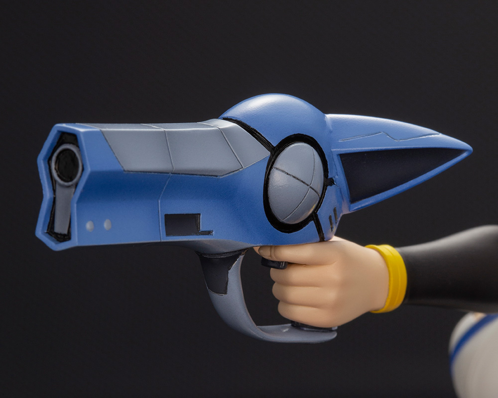Rebecca’s sidekick Happy, transformed into the Happy Blasters, is recreated in perfect detail. Rebecca’s robust physique is also faithfully sculpted. From the necklace to the earrings, each part of the statue is delicately detailed.