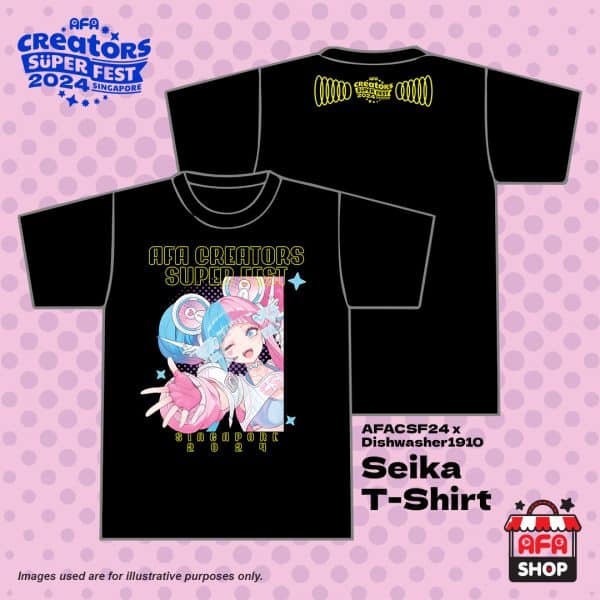 Be sure to check out the exclusive T-Shirt designed for Creator Super Fest Singapore 2024, featuring Dishwasher1910’s rendition of AFA Mascot Seika!