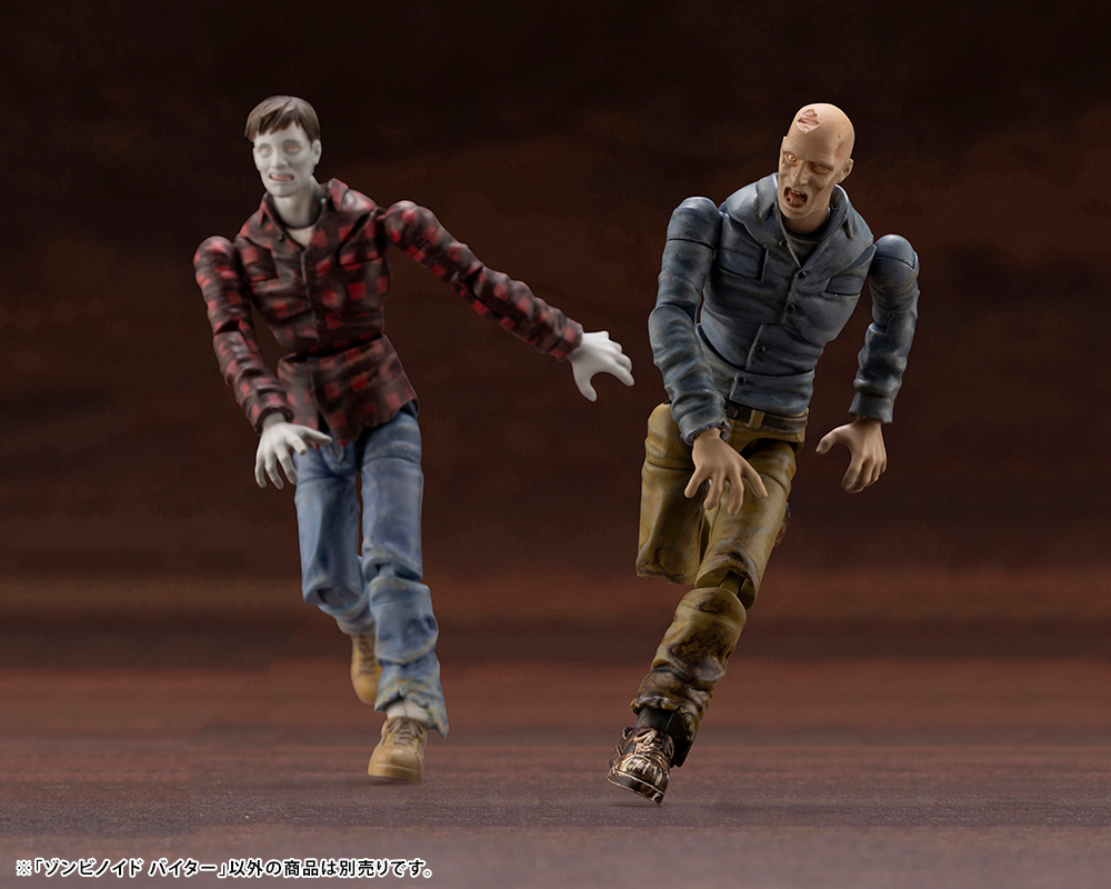 What is END OF HEROES? The dead rise from their graves and chaos reigns in this apocalyptic wasteland. The good & just have turned evil & sadistic, brave hunters to bloodthirsty wolves, and freakish creatures only heard in fairy tales now roam the land… This new plastic model kit series, END OF HEROES, comes in a 1/24 scale! The choice of characters for the lineup is made based on themes like horror, action, and sci-fi movies, featuring critical motifs such as zombies and bandits. Collect upcoming characters and create a movie studio right before your eyes! ■ Investigation Report 2: ZOMBINOID BITER *The color of the optional parts will match the model’s skin tone in the final product. |